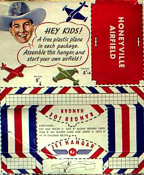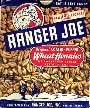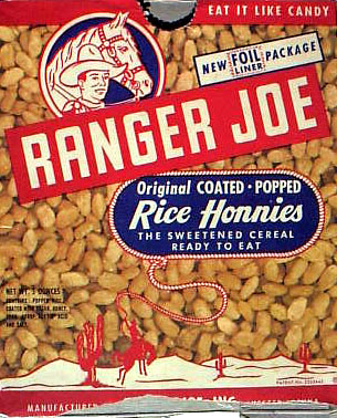 RANGER JOE RICE HONEYS - Ranger Joe - Airport back Airplane inside RANGER JOES WHEAT HONEYS - Ranger Joe - Airport back Airplane inside RED RYDER LAGENDORF CEREAL BOX - front ROBIN HOOD QUICK OATS - Dell Comic inside - Canadian SUGAR PUFFS (Canada) - Bear on Train - Bear photo 3 MINUTE OATS TUBE - front - Tootsie Toy inside TOAST'EM ANIMALS - Tutti Fruitti Owls (1968) - puzzle on back
