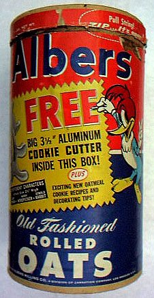 CEREAL(obscure) ALBERS OATS w/ Woody Woodpecker - Cookie cutter offer - Cartooning Card inside BEECH NUT CORN CEREAL BOX - front - back